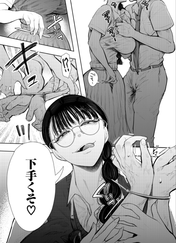 - しょむ先生の描く「表情」の魔力:特に金子さんの瞳の描写や、高瀬くんが涙目になりながら搾り取られる表情は圧巻。めがねというアイテムが、豹変後のギャップをより鮮明に際立たせています。